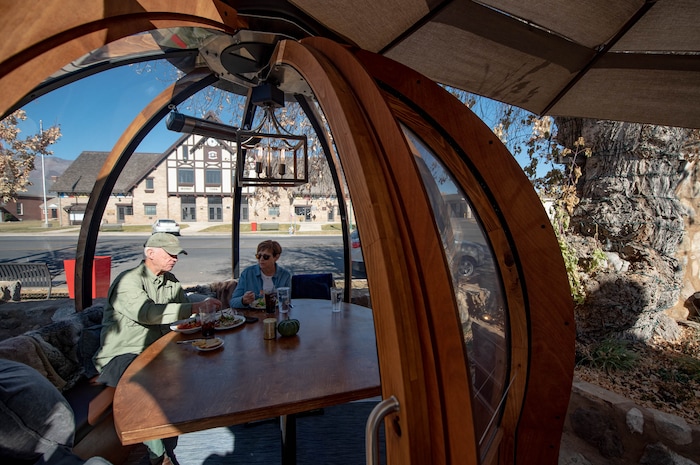 Andy and Emily Jenkins, owners of Cafe Galleria in Midway, started searching months ago for an outdoor enclosure so diners could continue to sit on the patio in winter.