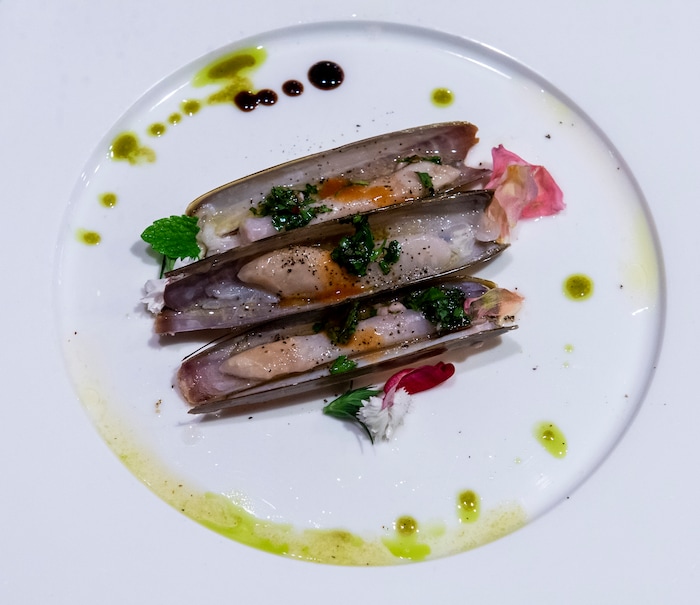 (Rick Egan | The Salt Lake Tribune) Marinated razor clams at La Trattoria di Francesco, served ceviche-style with a slightly spicy sauce, garlic and parsley, Friday, Jan. 8, 2021.