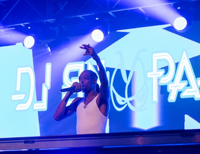 (Rachel Molenda | The Salt Lake Tribune) DJ Snoopadelic, also known as Snoop Dogg, plays a set at the Twilight Concert Series in downtown Salt Lake City on Thursday, Sept. 6, 2018.