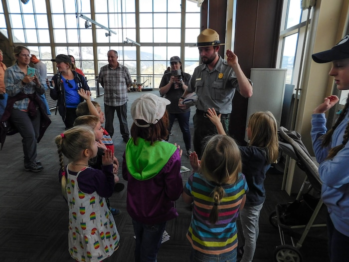 You guys were on the floor during ranger John Isom's visitor program, lumbering around like stegosauruses while he instructed you: "It's all in the hips." (Stegosaurus is an ornithischian, or bird-hipped dinosaur.) I had a flash of memory what it was like to want so much to take a time machine to prehistory and be part of it, if only for a second.