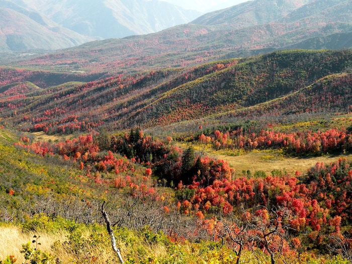 (Courtesy U.S. Forest Service) Maples take on shades of crimson and orange on the Sardine Peak Trail on Sept. 23, 2012 in the Uinta-Wasatch-Cache National Forest near Ogden. Photo by Doug Wewer.