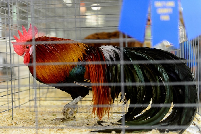 (Trent Nelson | The Salt Lake Tribune) Megan Dalley's Best in Show Poultry, a Sumatran Phoenix, at the Salt Lake County Fair, which opened in South Jordan Wednesday August 2, 2017.