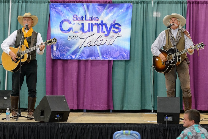 (Trent Nelson | The Salt Lake Tribune) Craig Creek Johnson and Lennie The Marshal Scopes, of Hired Guns, performs at the Salt Lake County Fair, which opened in South Jordan Wednesday August 2, 2017.