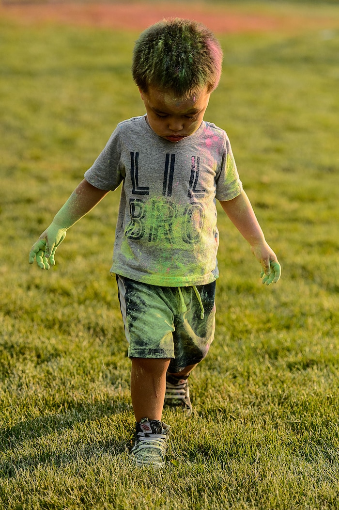 (Trent Nelson | The Salt Lake Tribune) Noah Serrano, 2, walks from a color throw at the Salt Lake County Fair, which opened in South Jordan Wednesday August 2, 2017.
