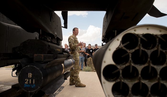 On Thursday afternoon, the group checked out an AH-64 Apache helicopter that landed nearby. Pilot Stu Smith, with the Utah National Guard’s 1st Battalion, 211th Aviation Regiment, hopped out and addressed a captive audience that peppered him with questions.