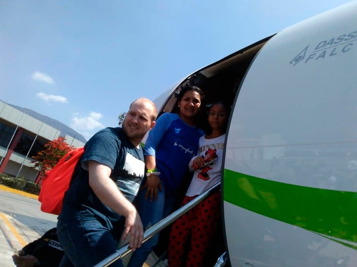 (Holt family photo via AP) In this image provided by the Holt family, Joshua Holt, his wife, Thamara, and her daughter, board a plane at the airport in Caracas, Venezuela, on Saturday, May 26, 2018. Jailed in Venezuela on weapons charges nearly two years ago, Holt was released Saturday after a U.S. senator pressed for his freedom in a surprise meeting with President Nicolas Maduro. Holt and his wife, who also jailed, were reunited with her daughter from a previous relationship at Caracas’ airport where the three boarded a chartered flight to Washington.