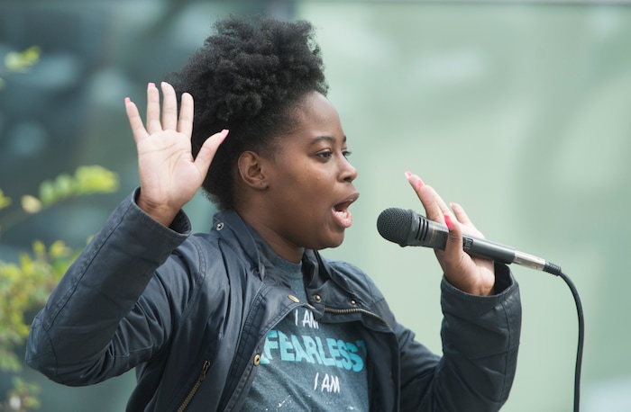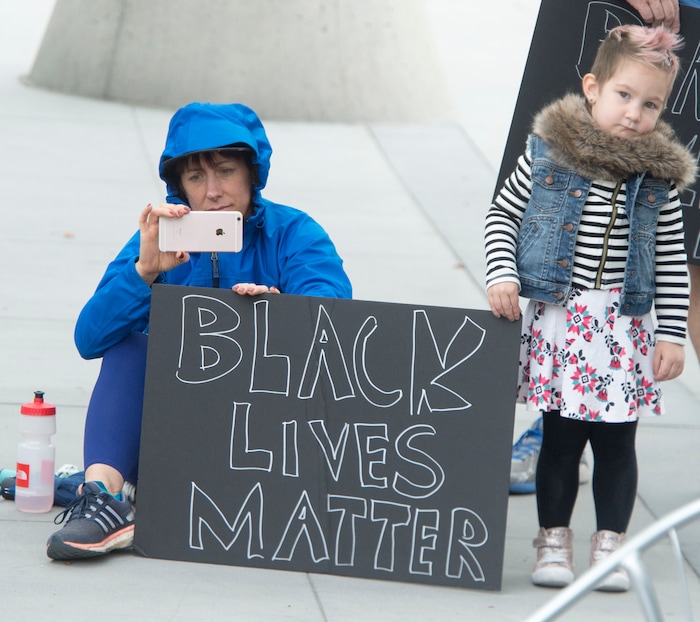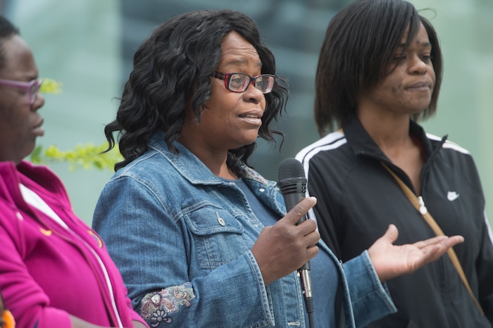 His sister and nieces arrived at the rally late, after getting lost in a city they didn’t know. Their arrival revitalized a chilly crowd that was frustrated and tired of asking for more police training.