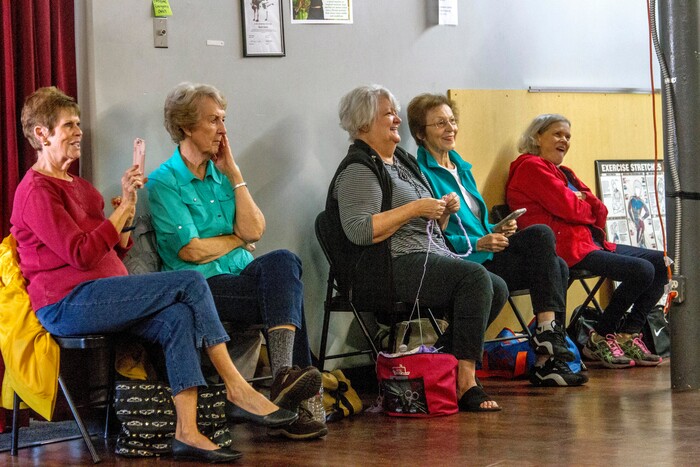 During the boxing class, the partners of each attendee can be found waiting watching and waiting in a neat row of chairs against one of the walls. Howe joked that the group of mostly women are their "corner men." They are there to provide cheer on their husbands or brothers, but they also offer each other support. Each of the women are going through a similar situation, so the hour-and-a-half class provides them with some time to socialize and talk about what they are going through.