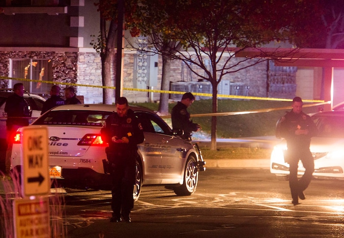 (Rick Egan | The Salt Lake Tribune) Police investigate a shooting at the Village at Rivers Edge Apartment complex in West Valley, City, Tuesday, November 7, 2017.