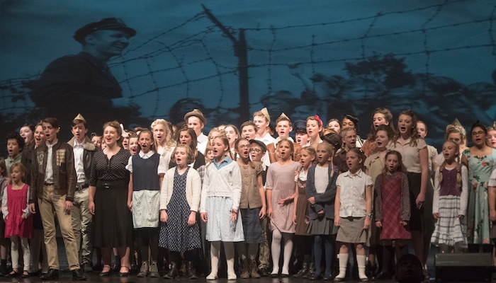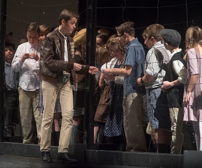 (Rick Egan | The Salt Lake Tribune) , Mueller Park Jr High students playing children from West Berlin sing the final song in their production of "The Berlin Candy Bomber" at Woods Cross High School, Saturday, November 11, 2017.