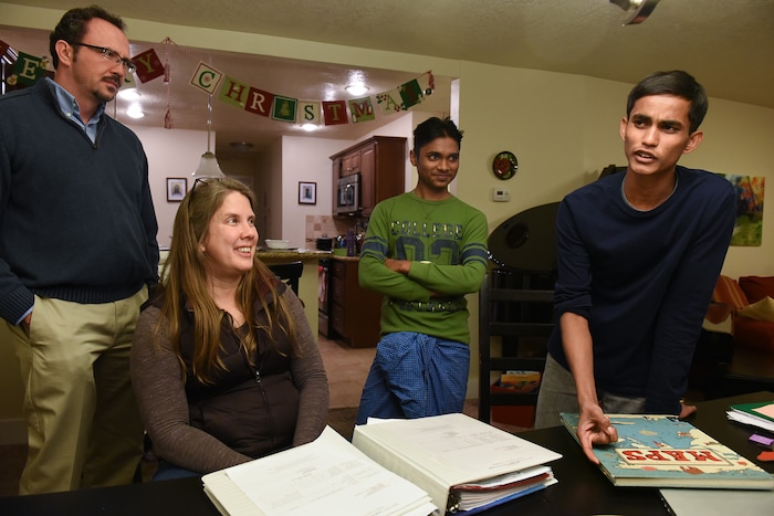 The Santarosas, who both work in administration at Westminster College, have two American-born adopted daughters, Maddie, 5, and Josie, 7. And they just took in a second Burmese boy, Faisal, 18.