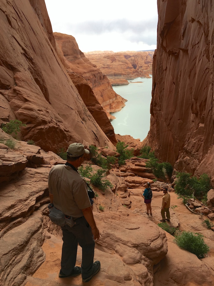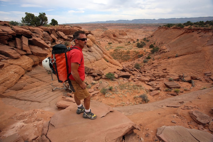 Al Hartmann | The Salt Lake Tribune Hiker explores an alcove in a sandstone canyon in the Cedar Mesa area in San Juan County. The mesa is loaded with Anasazi Indian sites. Cedar Mesa is on the Southern Utah Wilderness Alliance list of Utah's ten most threatened wilderness treasures.