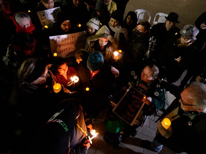 About 40 supporters gathered in the subfreezing temperatures for a candlelight vigil Wednesday night at Salt Lake City’s Library Square to support the family. People bundled in big jackets, hats and scarfs sniffled and cried as they voiced their support and said prayers for Santiago Garcia and her children.