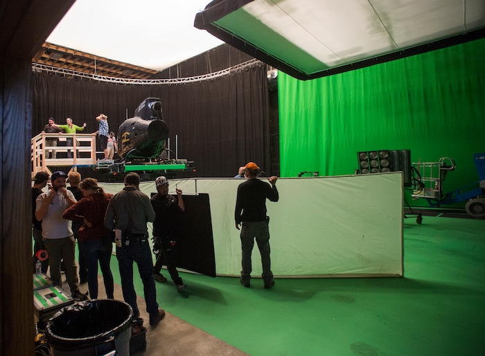 (Rick Egan | The Salt Lake Tribune) Stage crews prepare to shoot a helicopter scene Thursday, Nov. 16, 2017, for the upcoming Paramount Network series "Yellowstone" on a soundstage at Utah Film Studios in Park City.