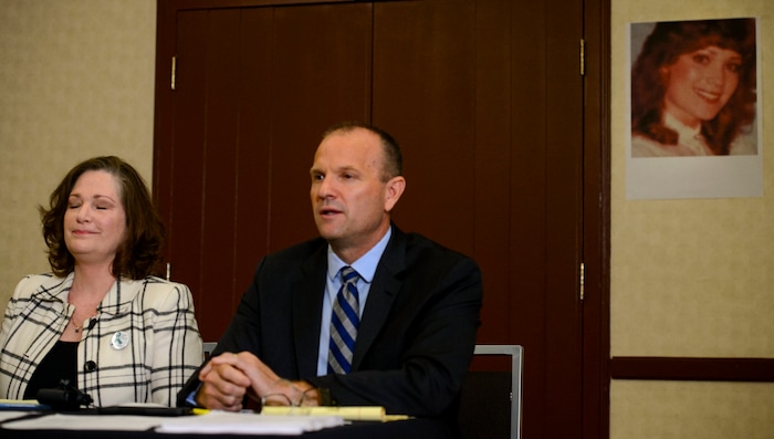 (Steve Griffin | The Salt Lake Tribune) McKenna Denson, the plaintiff in a lawsuit against the LDS church, looks into he audience as her attorney Craig Vernon holds up the results of a lie detector test Denson took, as they speak with the media to address the lawsuit, which alleges the former Missionary Training Center president raped her, and the church put him in that powerful role after receiving reports of sexual misconduct. She talked from the Hilton Salt Lake City Center in Salt Lake City Thursday April 5, 2018.