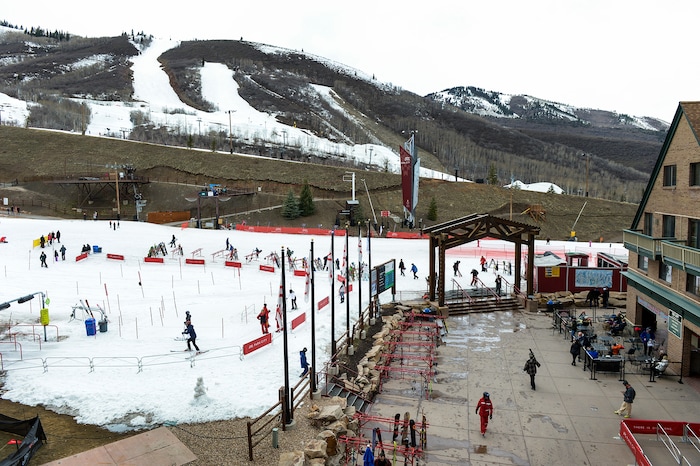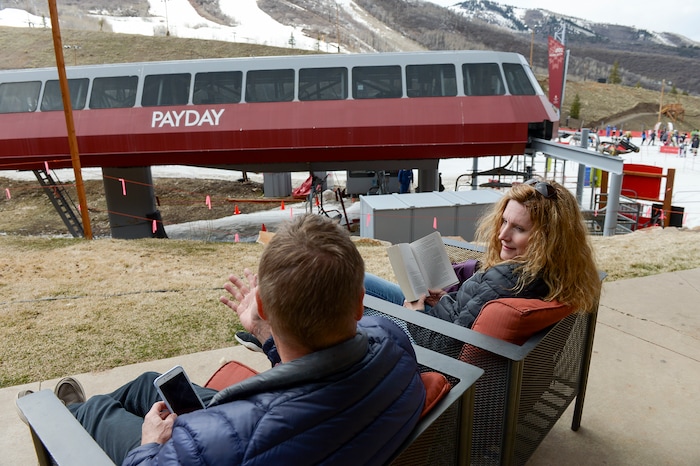 (Leah Hogsten | The Salt Lake Tribune) Park City Mountain Resort, Thursday, April 5, 2018. Despite the late arriving and limited snow this year, Utah ski resorts say they fared well because of snowmaking and the provision of side activities that helped ensure destination visitors had a good time while they were here, snow or no snow.