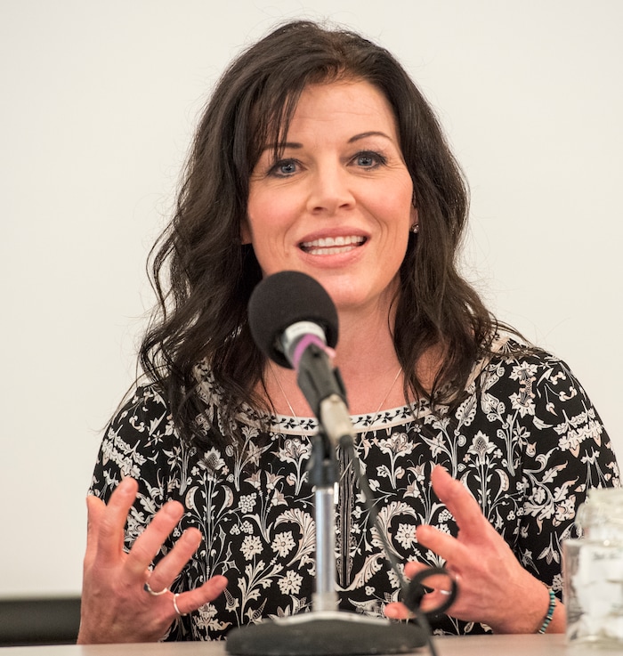(Rick Egan | The Salt Lake Tribune) The Rev. Becca Stevens, keynote speaker and author, gives a presentation during the Love Heals forum on sex trafficking at St. Mark's Cathedral, Friday, March 23, 2018.