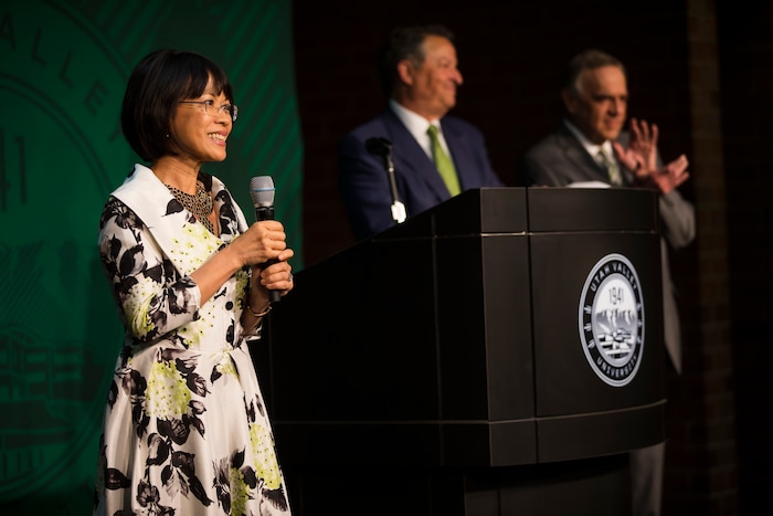 “She articulated a clear and compelling vision for UVU,” said Utah Commissioner of Higher Education David Buhler after Tuminez was nominated by the state Board of Regents, “and she understands the value of collaboration within Utah’s system of public colleges and universities.”