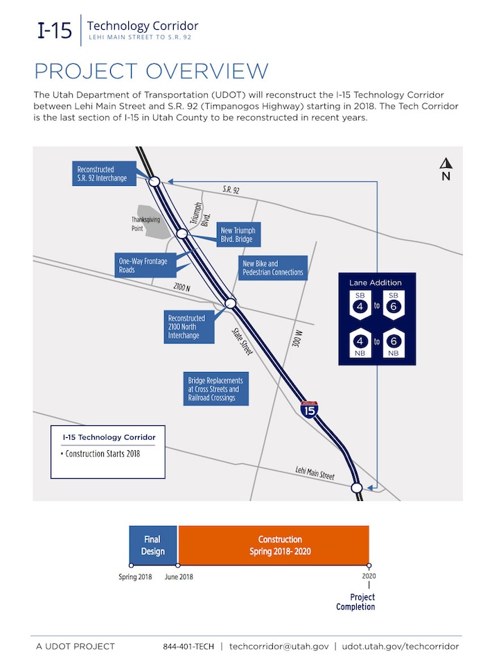 It will widen I-15 from four to six lanes in each direction between Thanksgiving Point and Main Street in Lehi. It is the last remaining section of I-15 between Salt Lake City and Spanish Fork where the freeway is only four lanes wide.