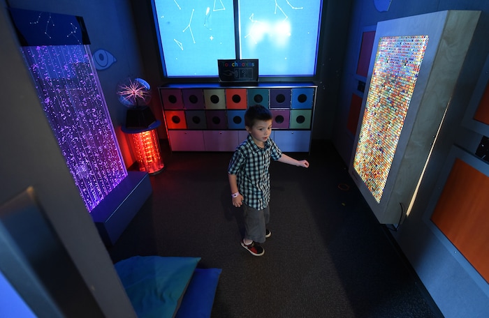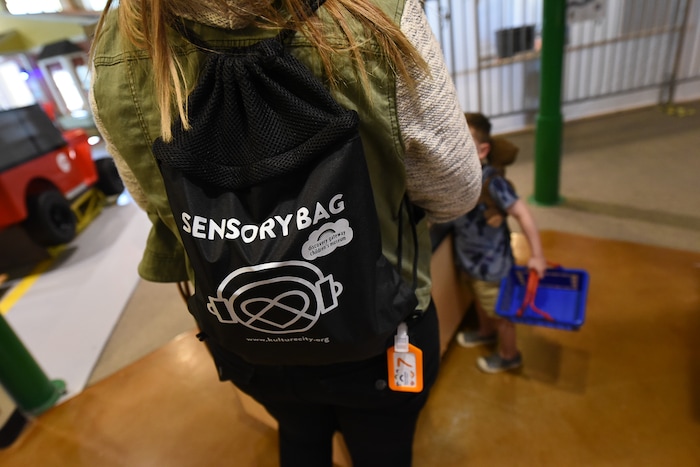 The museum is also equipped with “sensory bags,” with gear designed to help sensitive kids get through crisis moments. The bags include noise-canceling headphones, sunglasses, toys for fidgety hands and a weighted lap pad that serves as a calming tool.