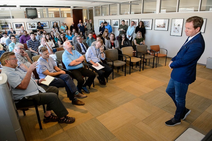 “We’ve got to address the realities of where print is going,” Huntsman told the more than 60 staffers assembled in the newsroom, noting that key decisions loomed with the approaching end in 2020 of a long-standing joint-operating agreement with The Tribune’s news rival, the Mormon church-owned Deseret News.