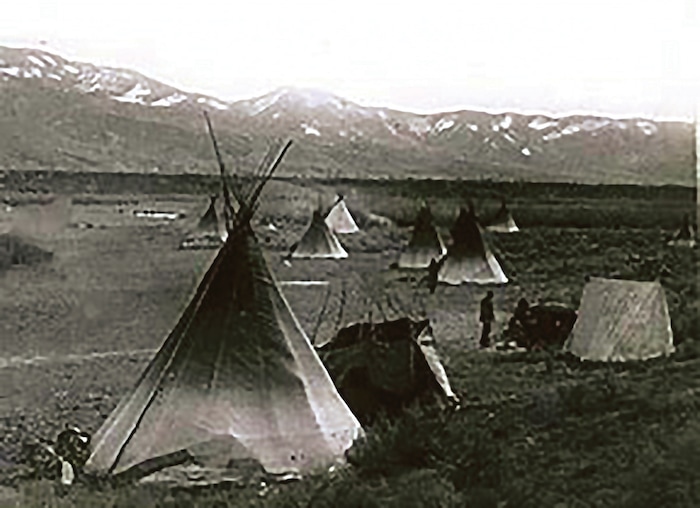 An undated photograph of the Northwestern Band of the Shoshone, who were living in the Bear River Basin near Franklin, Idaho.