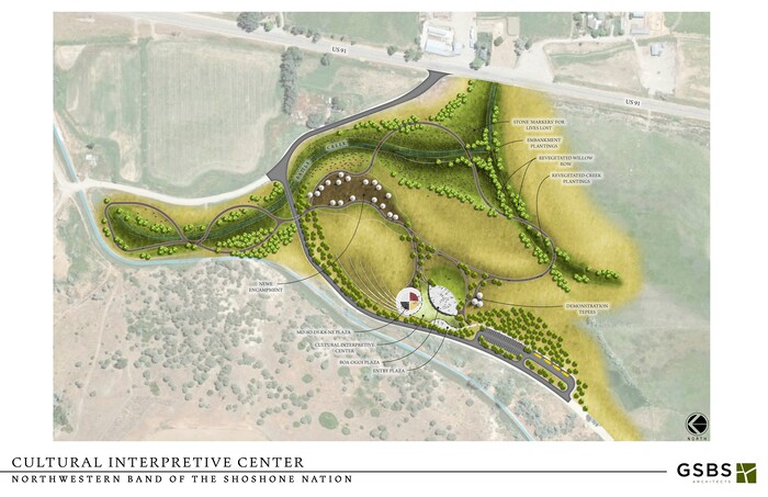 The Boa Ogoi Cultural & Interpretive Center's 6,000 square-foot architecture was designed to show deep reverence for the sacred land and what the land means to the Shoshone People. The building is tucked into the hillside in such a way that it can be difficult to distinguish from the surrounding landscape. The center will house exhibits of artifacts and information about the history and culture of the Shoshone Nation, classrooms and a bookstore. The center will tell the story of the lives lost in the Bear River Massacre and will also celebrate the survivors of the Shoshone Nation and their culture.