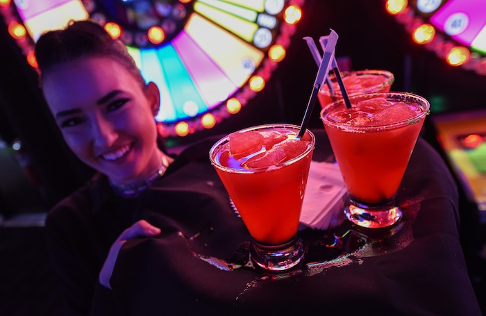 If you want to play an arcade game, though, you’ll have to leave your alcoholic beverage at the table.