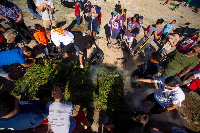 Skull Valley • Deborah Hoopiiaina sank her knees into the dry desert dirt and began plucking tufts of tall yellow grass and thistles from around the headstone.
