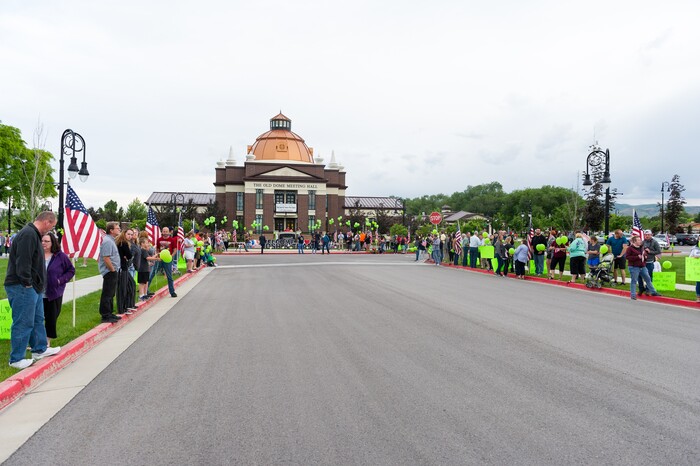 Hundreds of people wait in line to personally welcome home Josh Holt at the Old Dome Meeting Hall in Riverton Monday, May 28,2018