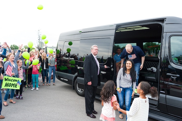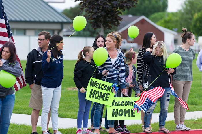 Hundreds of people tuned out in Riverton to celebrate the arrival of Josh Holt, his wife, Thamy, and their daughter, Marian, Monday, May 28,2018