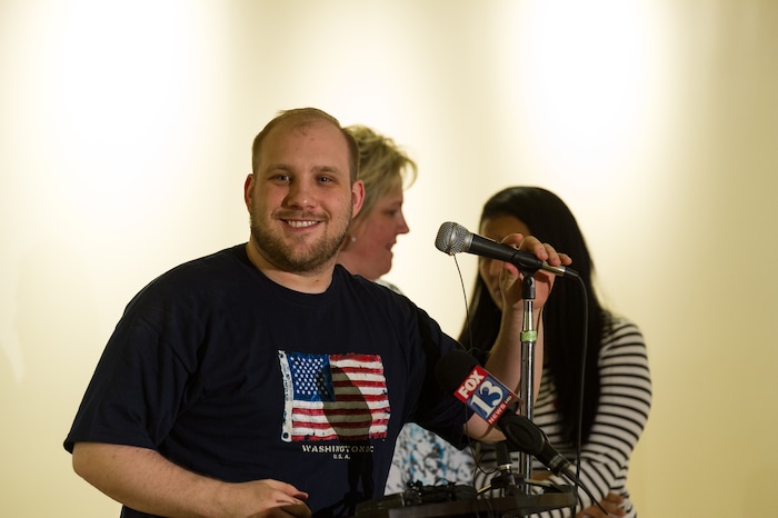 Hundreds of people packed the Old Dome Meeting Hall in Riverton to celebrate the arrival of Josh Holt, his wife, Thamy, and their daughter, Marian, Monday, May 28,2018