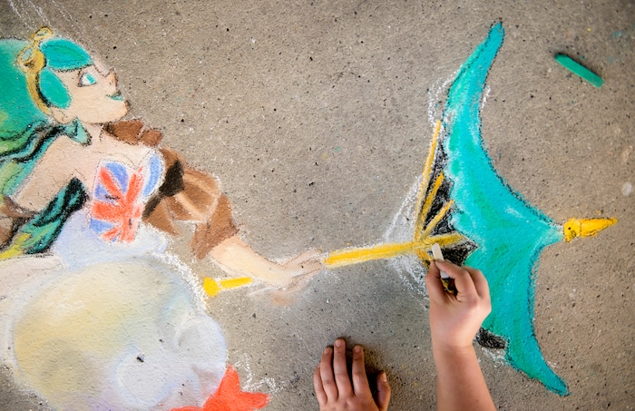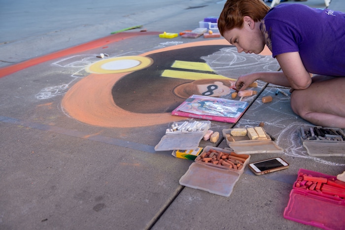 (Jeremy Harmon | The Salt Lake Tribune) Nicole Kleinman works on her entry during the annual Chalk Art Festival at the Gateway on June 15, 2018.