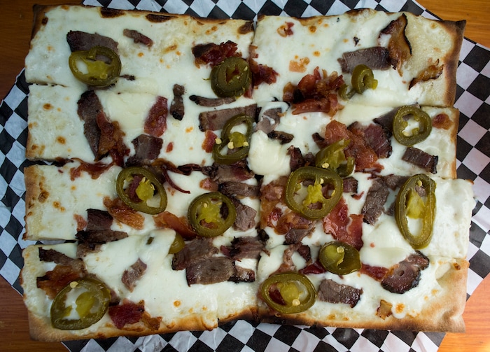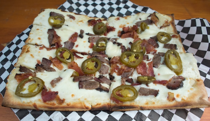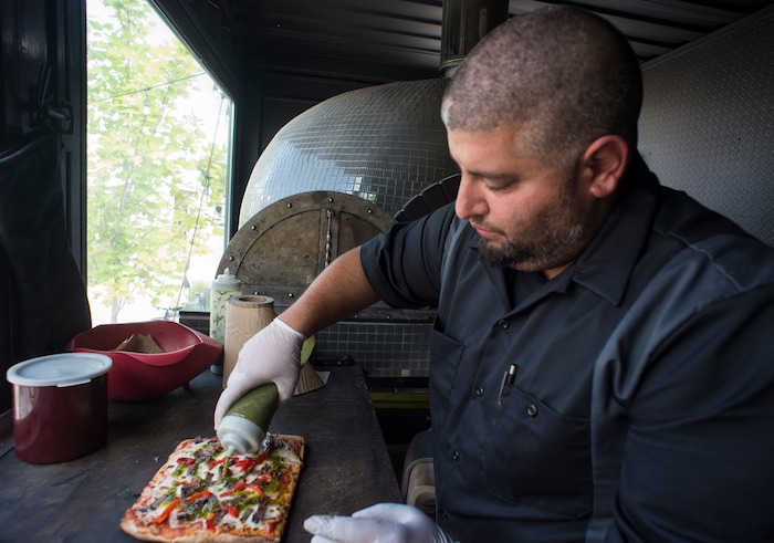 (Rick Egan | The Salt Lake Tribune) The Criolla pizza with smoked beef brisket, red peppers with homemade chimichurri from the Umani food truck.