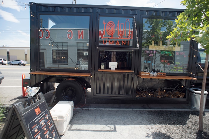 Umani • This gourmet food truck serves square pizzas just like they do in Uruguay, where the owners were born. The truck — a shipping container with a glass front — was specifically designed to cart around the 4,000-pound wood-fired oven. It cooks the thin-crust pizzas — like the Criolla, with beef, red peppers and chimichurri — to perfection.