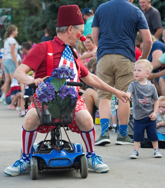(Rick Egan | The Salt Lake Tribune) Will Stamps drives his scooter at the 65th annual Bountiful Handcart Days Parade, Friday, July 20, 2018.