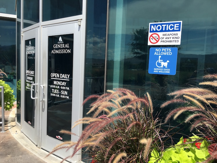 (Erin Alberty, The Salt Lake Tribune) This sign shows no weapons are allowed at the Loveland Living Planet Aquarium in Draper.