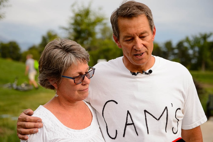 "He was adventurous, but he was not an extreme risk taker,” said Mark Hooyer, who attended at the memorial event with his wife, Carla. Both wore matching white T-shirts, painted to say “CAM’S MOM” and “CAM’S DAD” and “THANK YOU.”