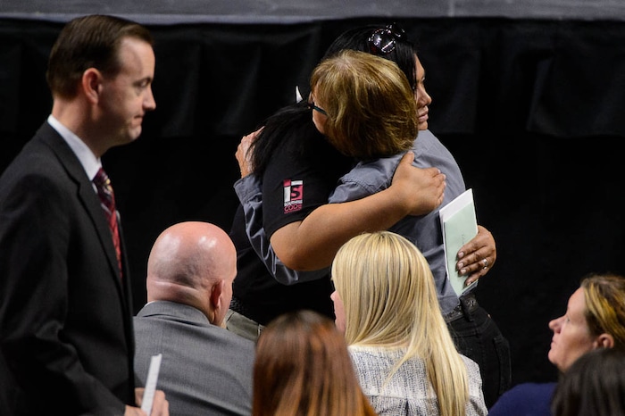 The seats around the Maverik Center, too, were full of friends, family and co-workers who came to say goodbye. Robinson made almost everyone she met smile, and her death last week was a shock to the community.