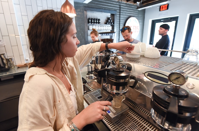 The brown-brick building at 210 S. University St. looks mostly the same from the outside. But the inside is bright, clean and remodeled with an industrial counter, white tile walls and high-tech espresso and coffee machines.