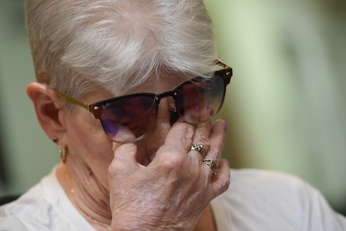 (Francisco Kjolseth | The Salt Lake Tribune) Bonnie Foerster, 74, of South Salt Lake, finally gets her wish of marrying her partner of 50 years, Beverly Grossaint, even though Grossaint died on May 27, 2018. Foerster wears her partner's rings as well as her own. Foerster, who is legally blind and a double amputee, shed tears of joy on Tuesday, Aug. 21, 2018, exclaiming, "I can finally start healing," after a judge provided the legal recognition and allowed her to be legally married.