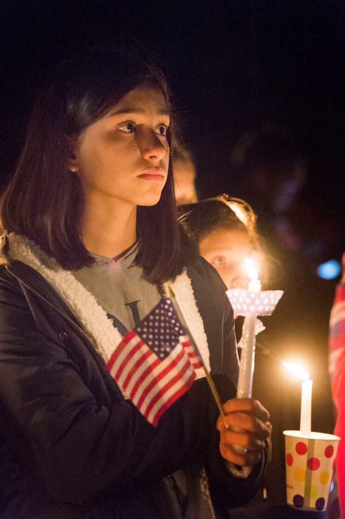 The crowd slowly dissolved, ending the vigil by singing that “the flag still stands for freedom.” They left behind drops of white wax from their candles, which dotted the black street, a reminder that they were there.