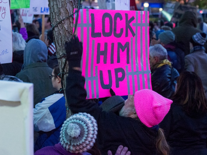 Midway through a rally in downtown Salt Lake City, the few hundred in attendance belted out a half-ironic chant, inspired by the rhetoric of the president they stood in the cold to protest: