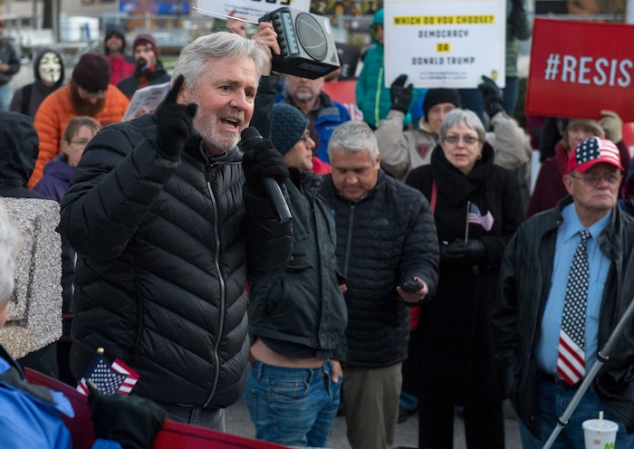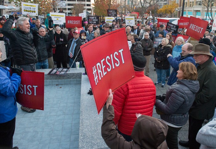 The rally — one of many similar demonstrations across the country on Thursday — came together in about a day, and organizers said they were impressed with the turnout of at least 200. The event, held in front of the Wallace F. Bennett Federal Building, included short speeches from Salt Lake Indivisible organizers Joanne Slotnik, Jamie Carter and Schultz, outgoing Utah State Sen. Jim Dabakis and cameo appearances from Utah Sen.-elect Mitt Romney and Utah Rep. John Curtis, who both released statements on the matter through email.