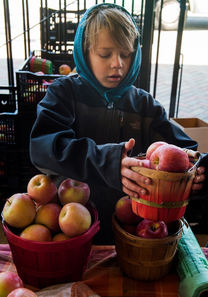 (Rick Egan | The Salt Lake Tribune) Niles Pyne, 9, sells Apples for Pyne Farms, at the Downtown Winter Market which opened today at the Rio Grande Depot, Saturday, Nov. 10, 2018.