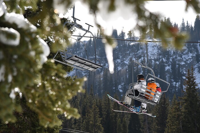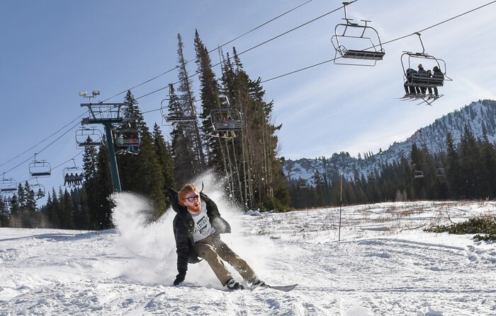 (Francisco Kjolseth | The Salt Lake Tribune) Brighton Resort is the first in the state to kick off the winter season as skiers and snowboarders take to the slopes with two lifts open, Thursday, Nov. 15, 2018.