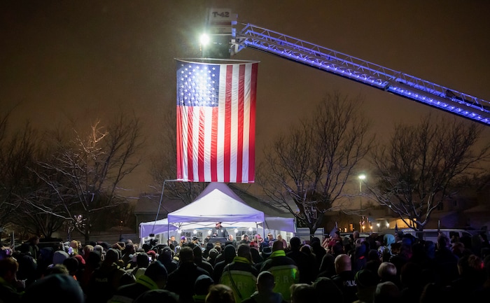 (Keith Johnson | Special to The Tribune) South Salt Lake Police Chief Jack Carruth addresses the crowd gathered for a candlelight vigil Dec. 2, 2018, at the Columbus Community Center in South Salt Lake City for Officer David Romrell, a South Salt Lake police officer killed in the line of duty Nov. 24, when he was struck by a car driven by a fleeing suspect. Several hundred members of the community attended the vigil including family, friends, South Salt Lake Mayor Cherie Wood and representatives from the Utah Highway Patrol, Unified Police and Unified Fire.