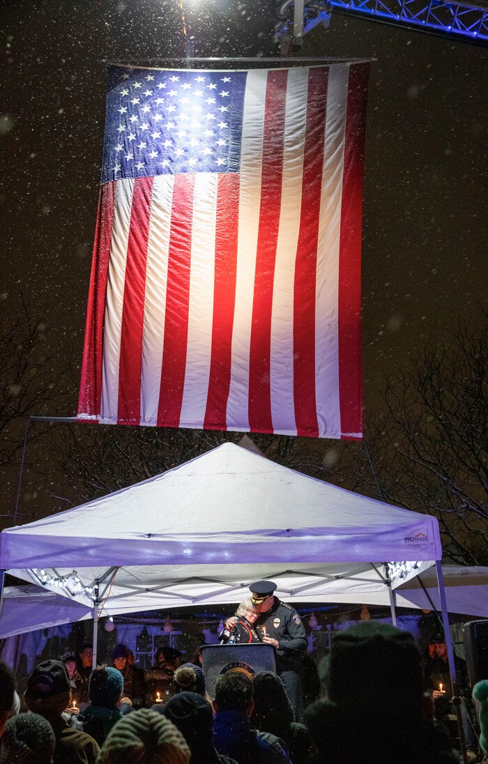 Hundreds brave the wintry weather to honor fallen South Salt Lake Officer David Romrell at candlelight vigil