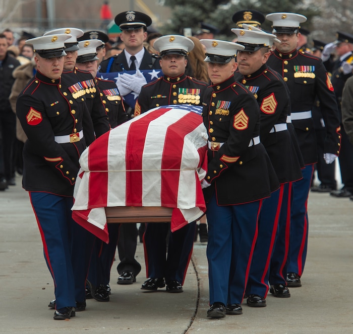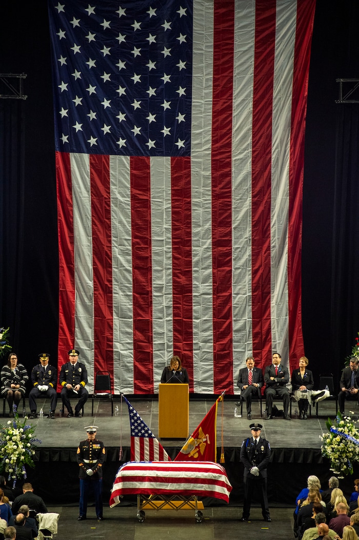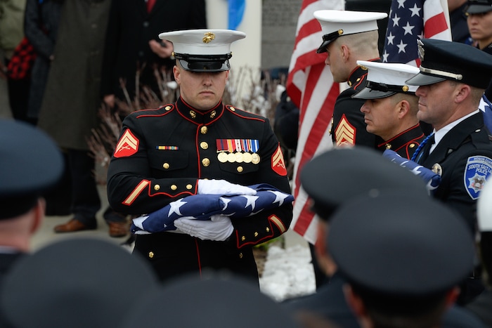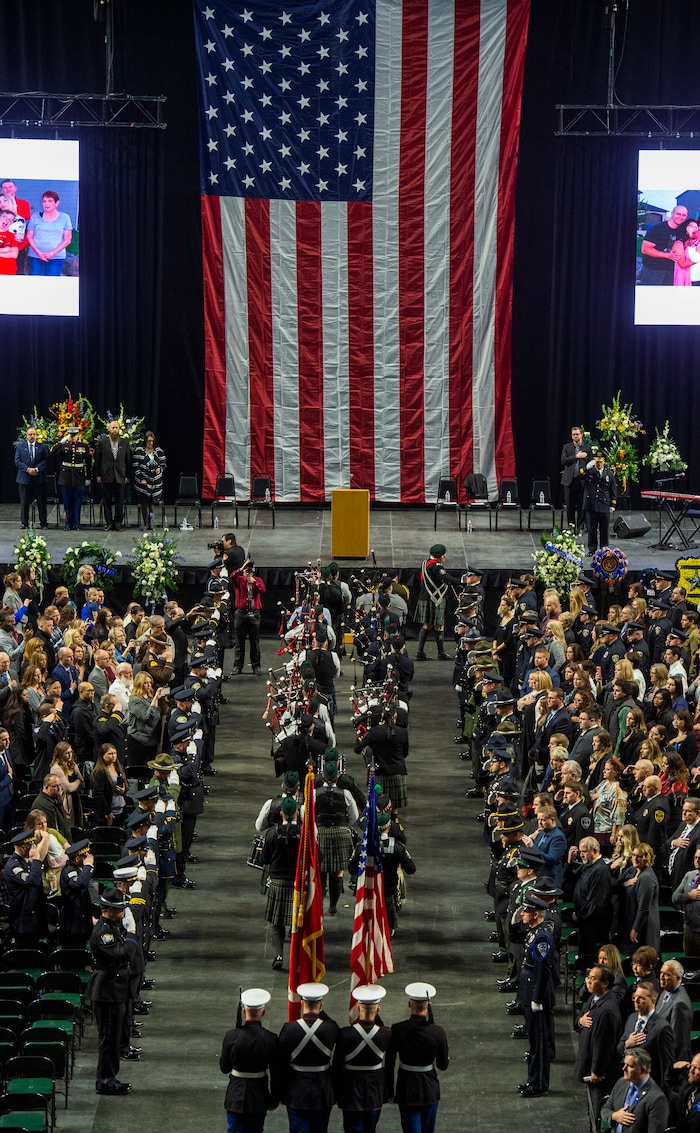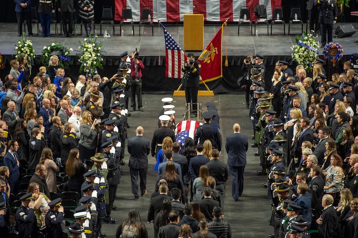 Throughout the nearly two-hour service, speakers described David Romrell as a model Marine, police officer, friend and family man — with a genuine and joking personality to boot.