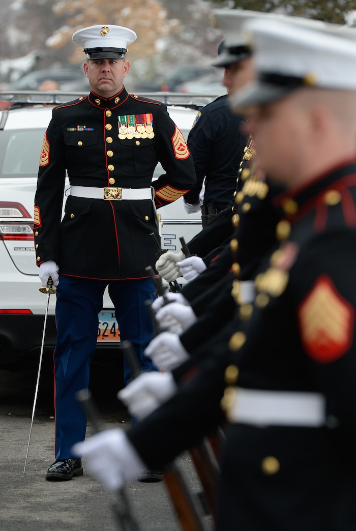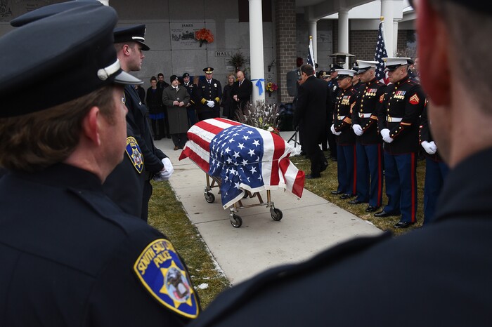 South Salt Lake Police Chief Jack Carruth told mourners that David Romrell had earned the trust and respect of his fellow officers in his time there. He was an ambitious and quick learner, and his past experience with Marines helped him tactically.